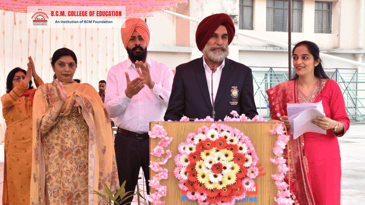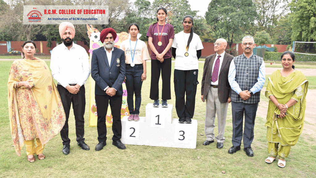 Zest and zeal among the students and staff marked the 25th Annual Sports Meet at B.C.M. College of Education, Ludhiana on March 20, 2026. Principal Dr. Monika Dua welcomed the Chief Guest of the day, S. Sukhdev Singh Pannu, Dronacharya Awardee, Athletics. The occasion was graced by Mr. Gurdeep Singh, D.O.C., Bharat Scouts and Guides, Punjab; Dr. Prem Kumar, Secretary,