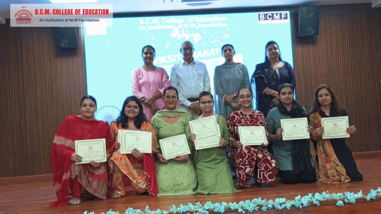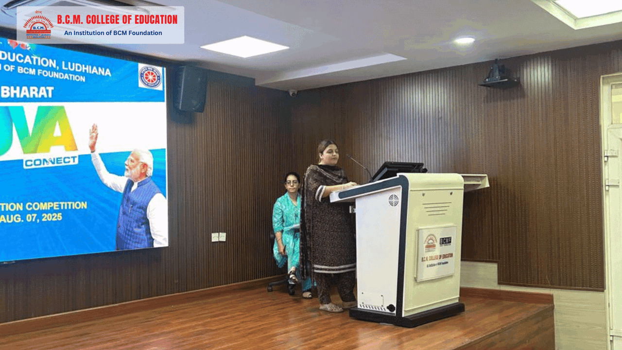NSS Wing of BCM College organised Viksit Bharat Yuva Connect programme to inspire and sensitise young BCMites and to make efforts to achieve comprehensive and sustainable India. Poster making, Declamation and Poem Recitation Competitions were organised on August 6, 7 and 8, 2025 in the college campus. On August 12, 2025, International Youth Day was celebrated with full zeal and fervour. The event was power packed with powerpoint presentations, poems, speeches and songs to ignite the fire of nationalism and foster youth engagement in the developmental transformation of India. This auspicious occasion was graced by Dr. Prem Kumar, Secretary College managing Committee. Addressing the audience, Dr. Kumar congratulated the students for the successful completion of Visit Bharat programme and urged the future teachers to upgrade their skills, dream big and be responsible citizens to face the challenges of AI driven era. Principal, Dr. Monika Dua appreciated the efforts of NSS Programme Officers for putting up a splendid show.