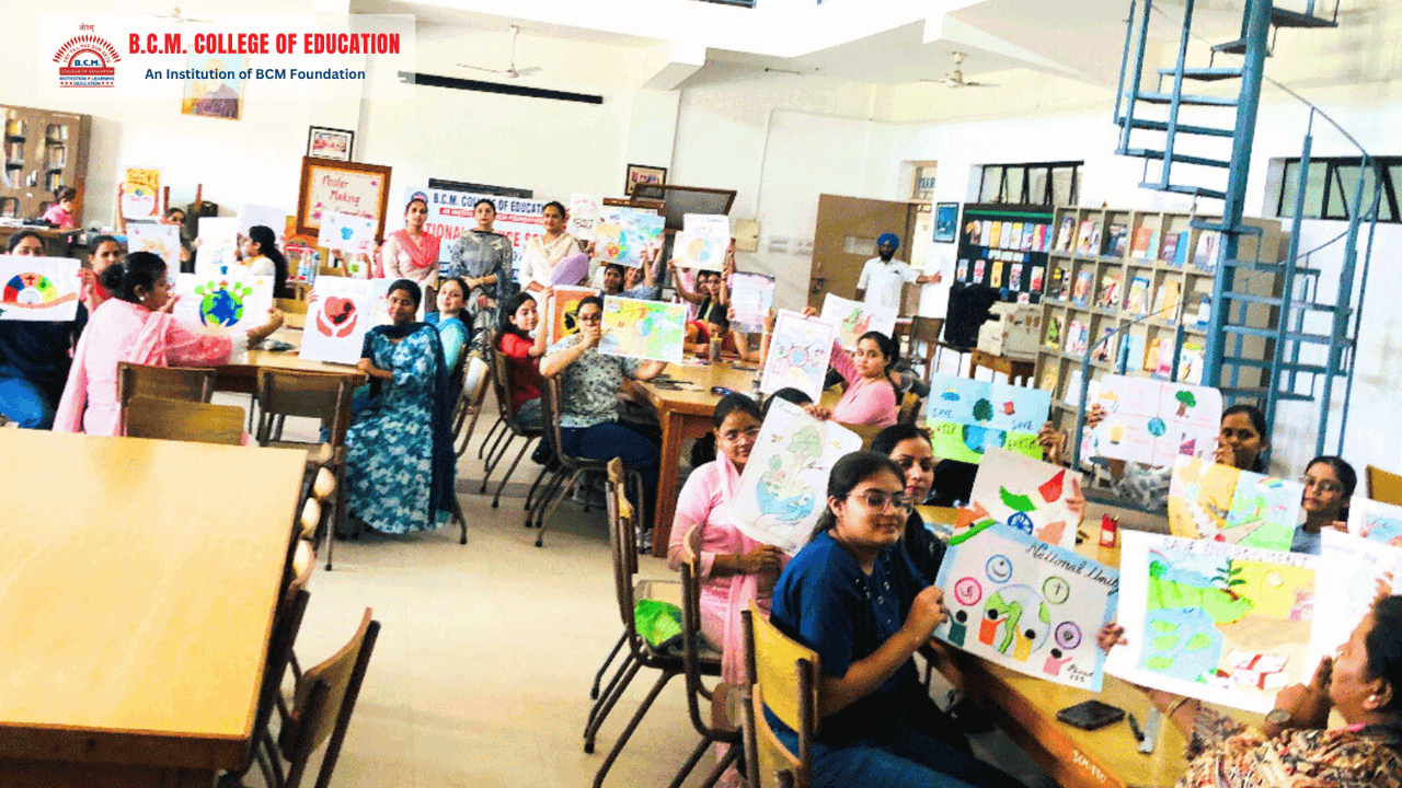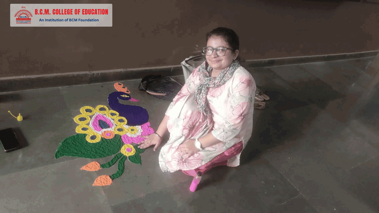 The NSS Wing of BCM College of Education celebrated NSS Day with great enthusiasm and fervor on September 24, 2025. The event was aimed at fostering the spirit of community service, creativity and social responsibility among the student-teachers. Poster Making and Rangoli Making competitions on the theme ‘Female Foeticide, National Unity and Environment’ were organised. The agile participants showcased their artistic talents and innovative ideas beautifully portraying the values of the National Service Scheme such as unity, discipline and service to society. The Principal appreciated the efforts of the NSS Programme officers Mrs. Manjit and Dr. Amita for organising activities related to social upliftment and nation-building.